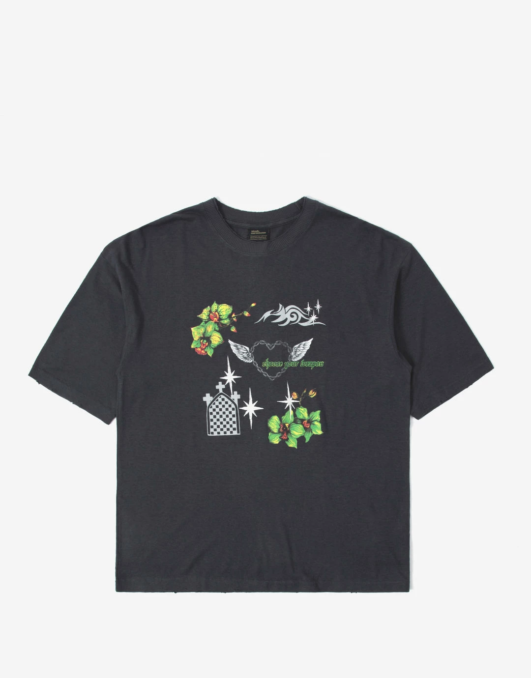Afends Women’s Choose Your Weapon Hemp Oversized T Shirt – Charcoal