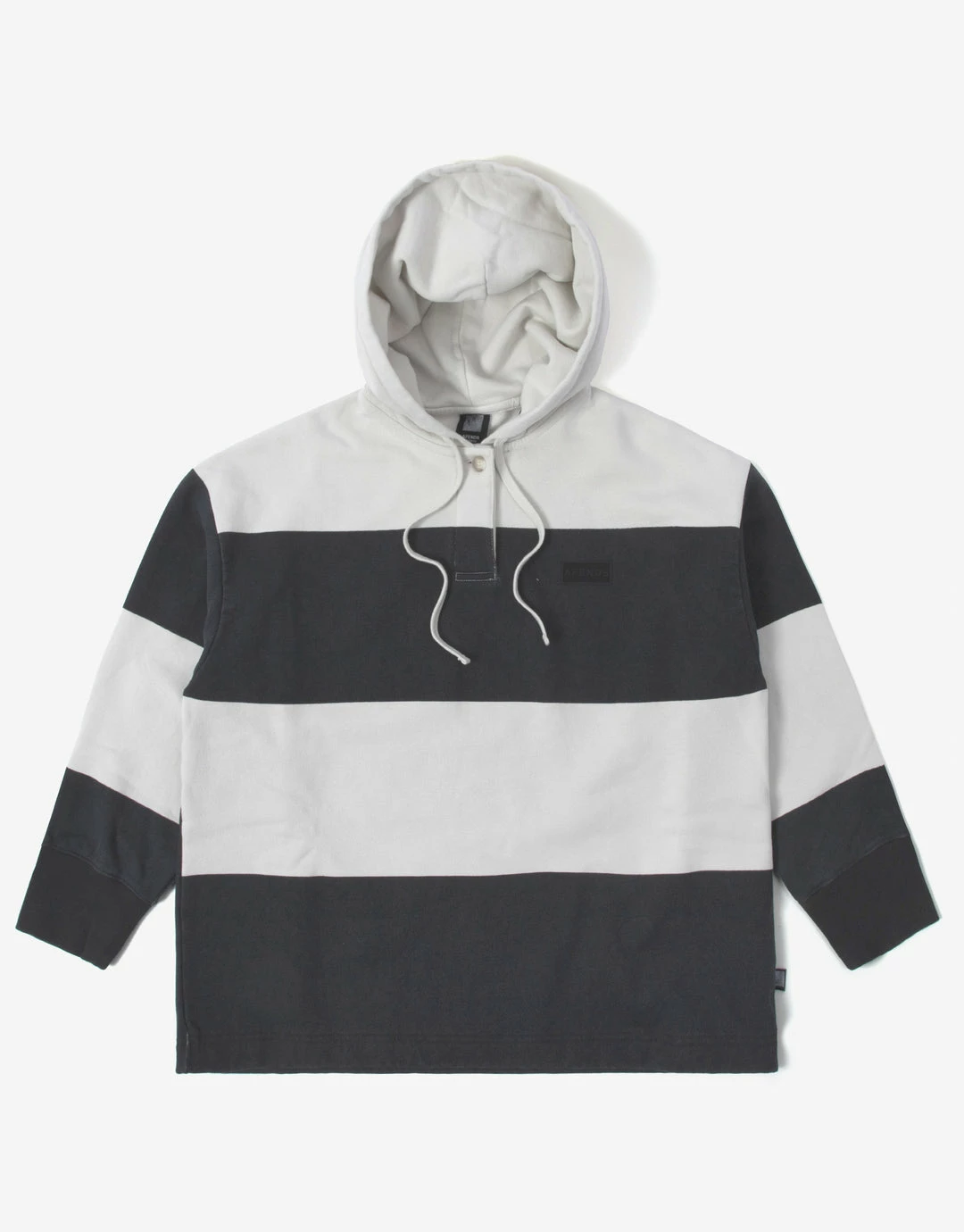 Better than your average oversized hoodie. Crafted from our eco-friendly organic cotton brushed fleece and spun into an open-ended yarn, this jumper has a premium hand-feel while minimising textile waste. Our unisex jumper offers an oversized fit, pull on hood, front placket and super cosy design in a statement allover stripe.