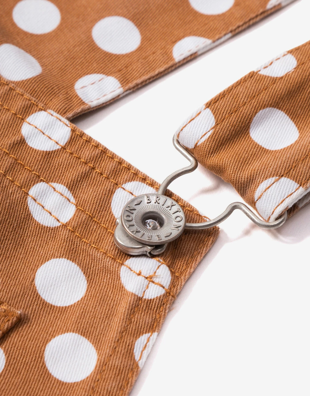 The Christina Crop Overall from the Brixton Women’s range are a relaxed style, with multiple pockets, emulating a workwear style, updated for modern day to day wear. In an all over polka dot print this season, they come in an 8.5oz cotton.