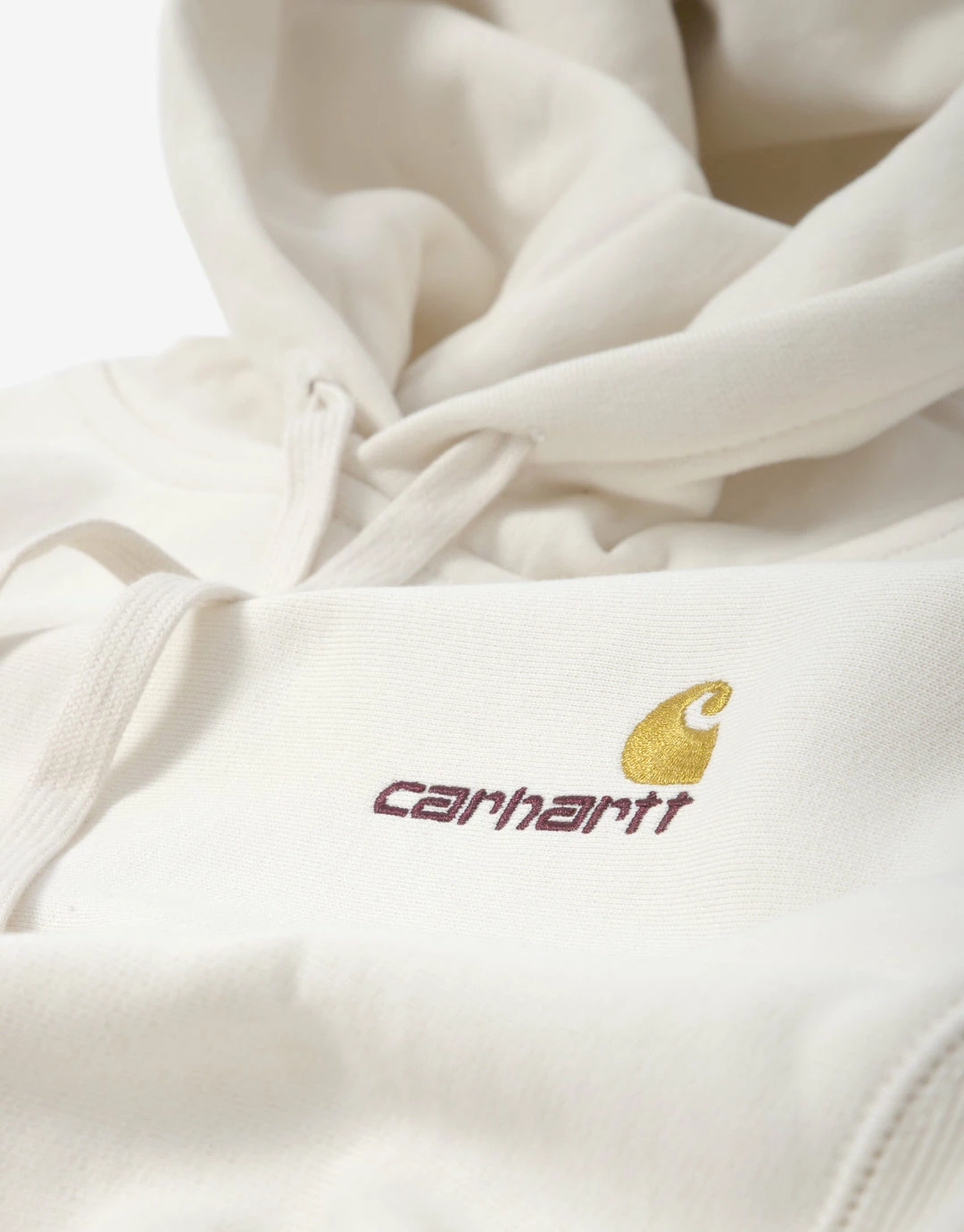 The Carhartt American Script Hoody re-works a classic Carhartt logo we haven’t seen since the 90s. Working two classics into one the American Script might just be the most powerful Carhartt logo yet. The top is a poly/cotton blend, but airing on the heavyweight variety and the logo application is embroidered. Â
