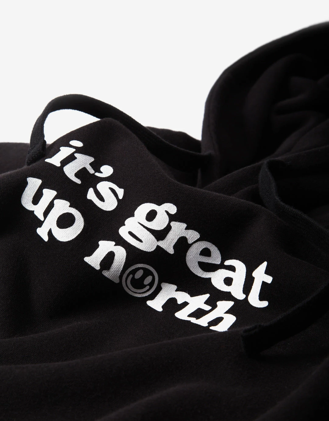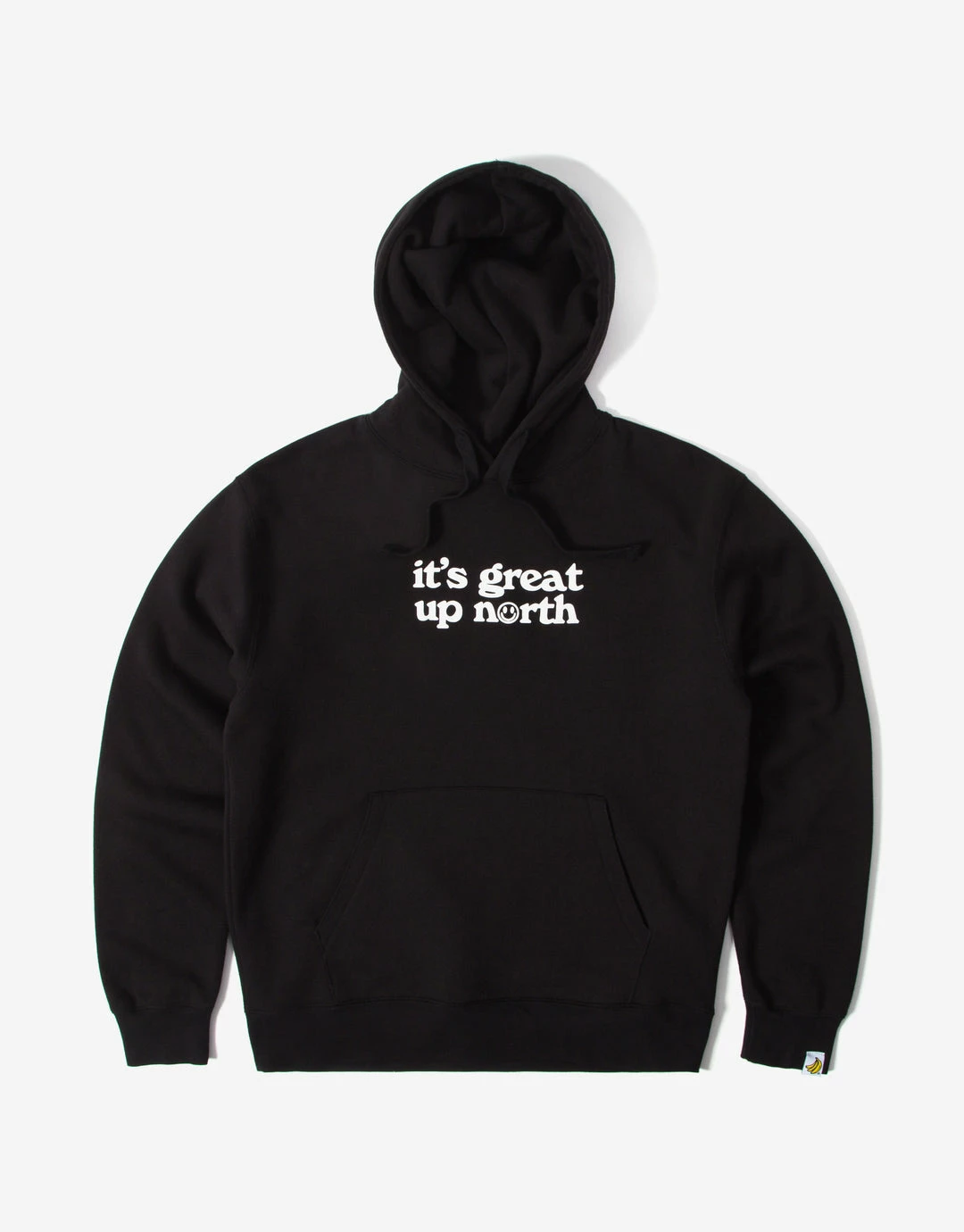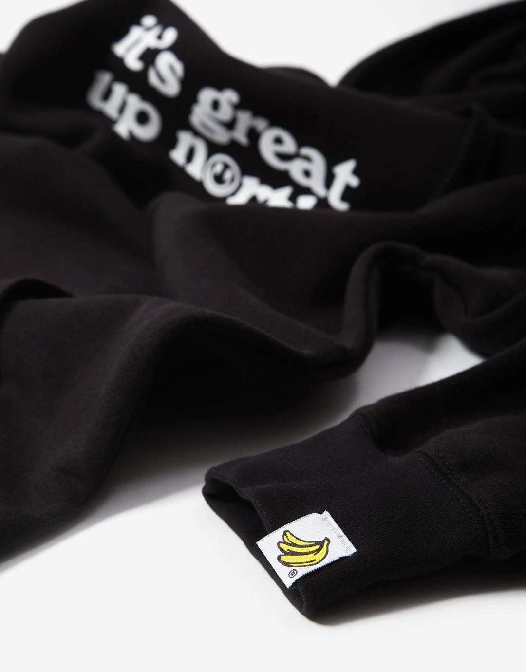 We team up with Middlesbrough based artist, Dan Wilson, for the latest instalment of our in-house CHIMP brand offering. Putting to use Dan’s ‘It’s Great Up North’ artwork, we’ve created a range of wearable premium essentials with a graphic twist. The It’s Great Up North Hoody features a graphic print at the chest.