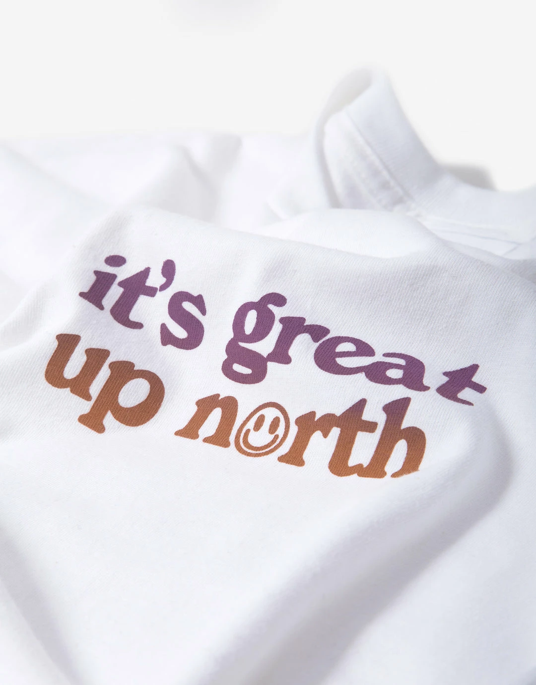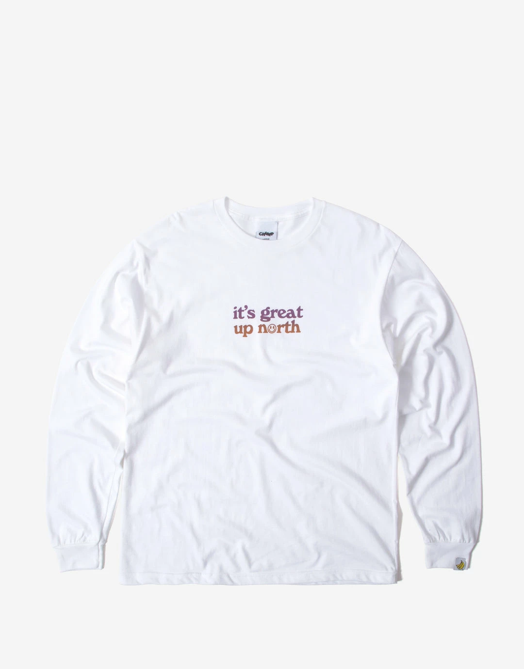 Chimp It’s Great Up North Long Sleeve T Shirt –Â White/Sunrise