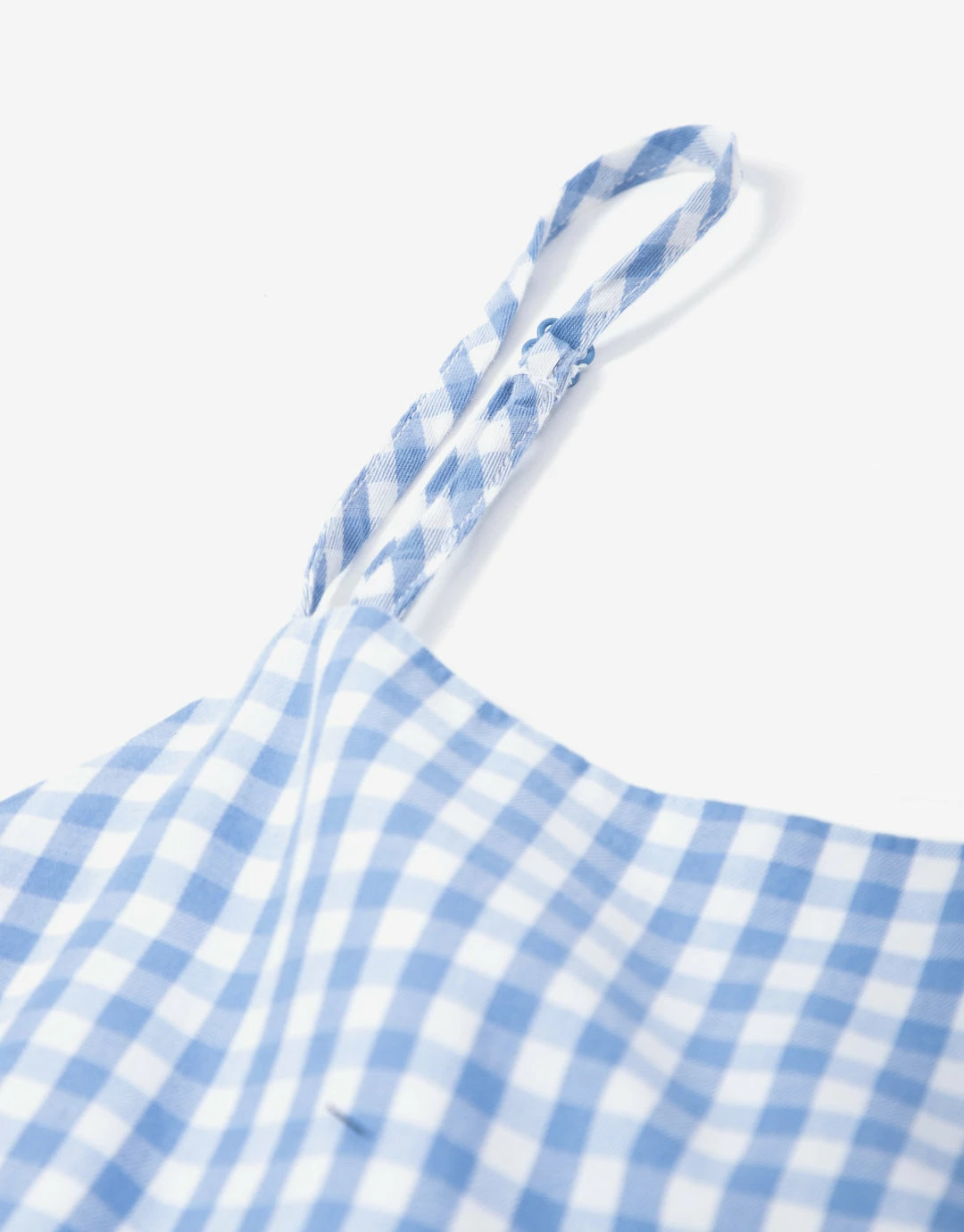 This sleeveless dress is made with cotton yarn-dye shirting in a gorgeous gingham print. It has three separate sections to give the skirt structure, while adjustable straps customise the fit.