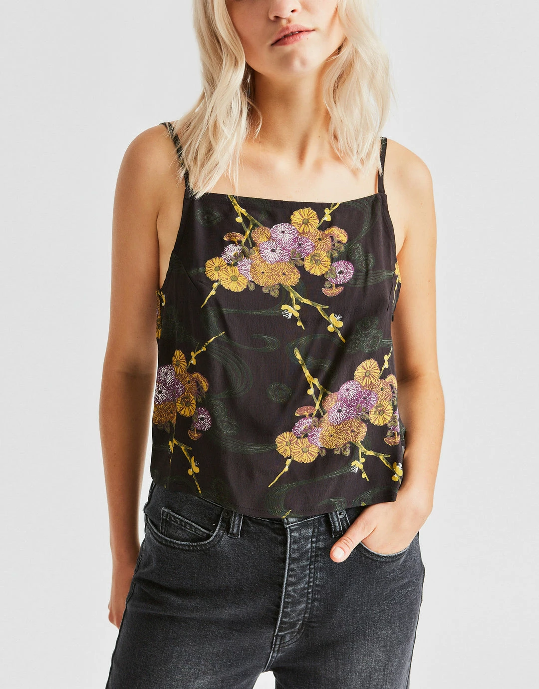 The Gisele Cami Top from Brixton Women’s carries an all over floral print, in 100% viscose, with a boxy fit and square neck. Easy to dress up or down, this versatile piece in finished with adjustable straps for a perfect fit.Â