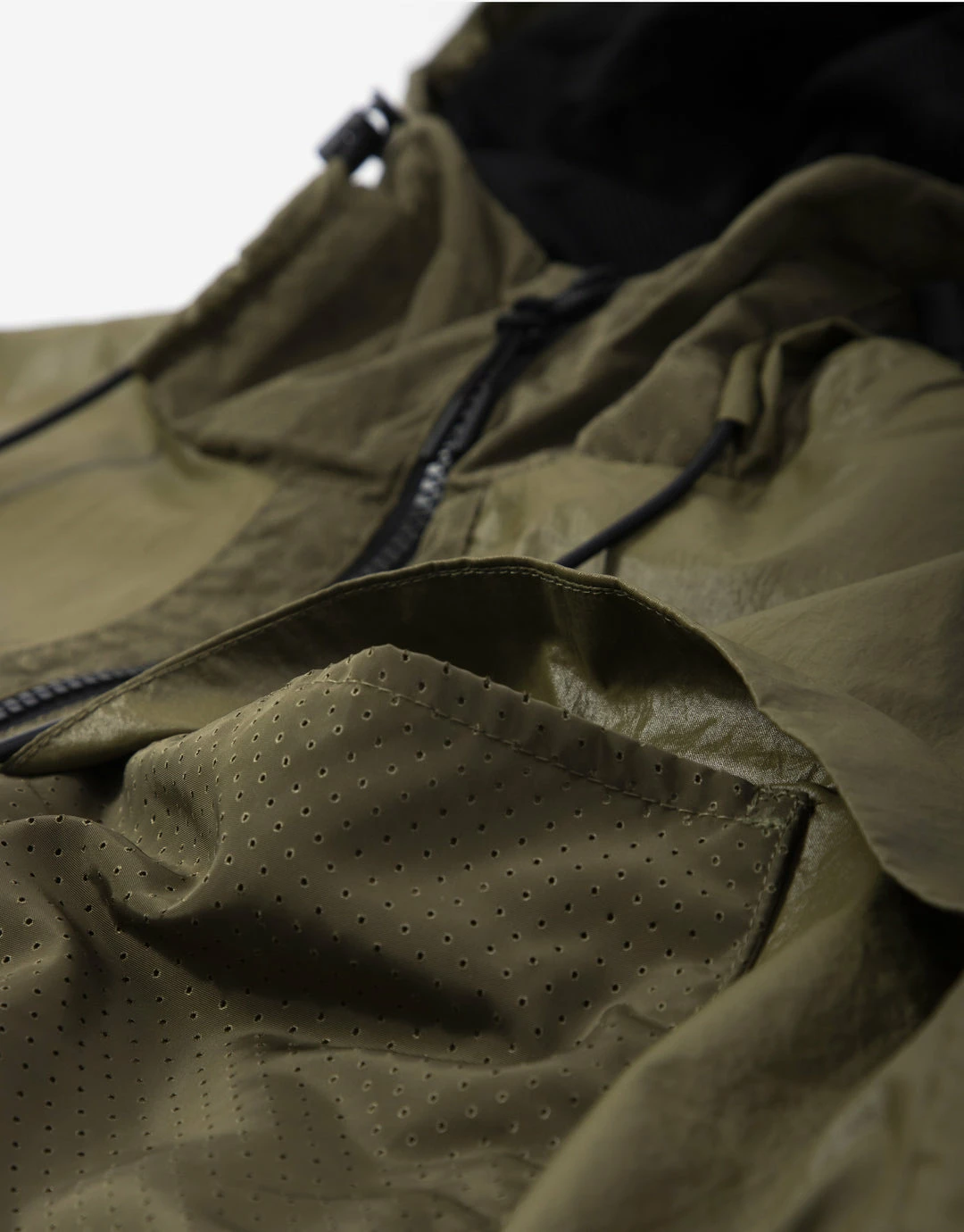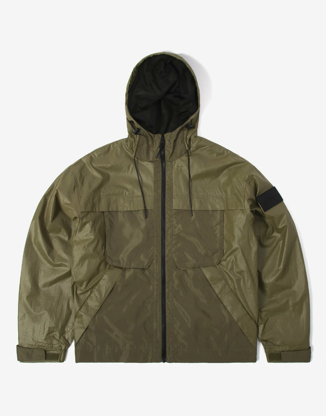Calvin Klein’s Perforated Wet Look Jacket is made from 100% polyamide, making it lightweight and breathable. It features a toggle adjustable hood, large twin chest pockets, rubber patch sleeve detail, full zip closure, velcro adjustable cuffs and elasticated hem.