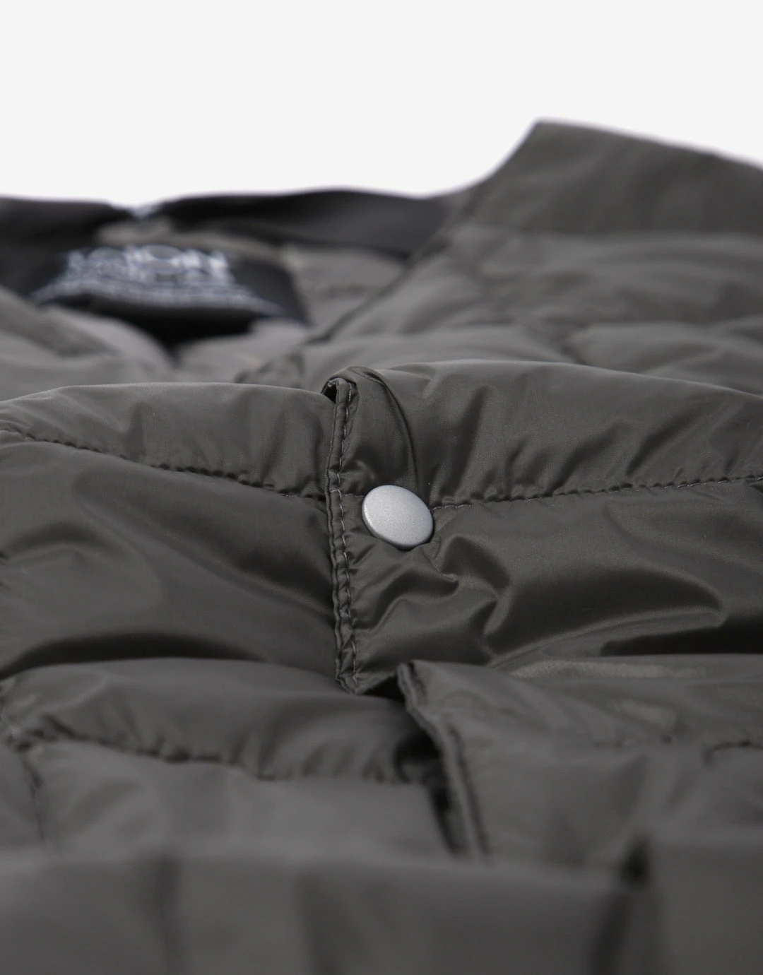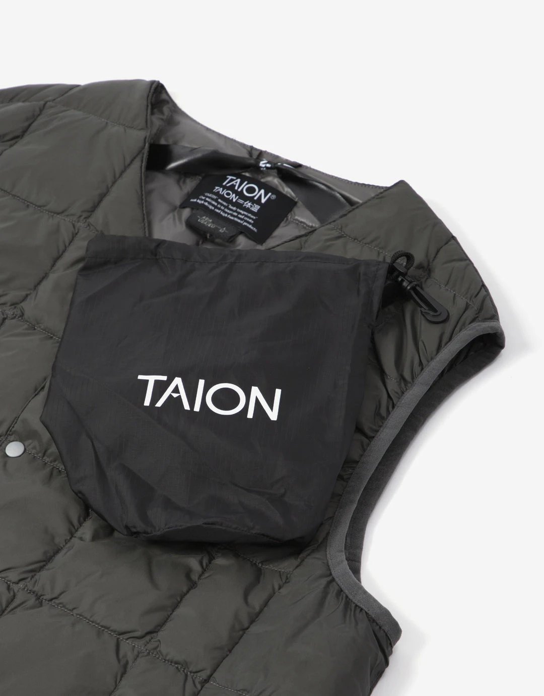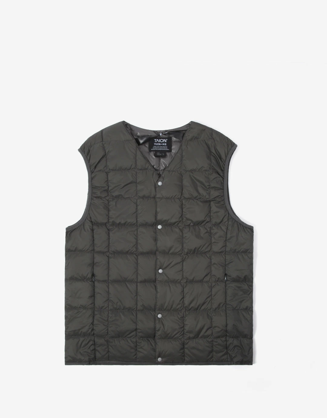 The V Neck Button Down Vest from Taion channels the same technology and make up as their Crew Neck Jacket. With a unique grid padding style, this piece is lightweight and versatile, but sure to keep you warm. With a V Neck and full button closure, it features zippered pockets and works just as well as a layering piece as it does by itself.Â