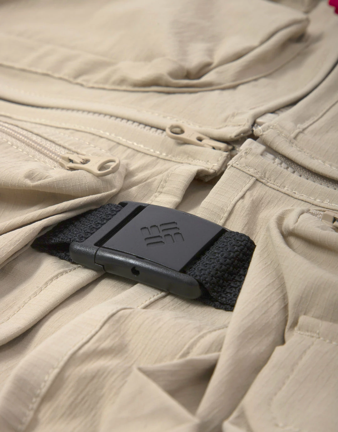 This multifunctional vest from Columbia’s newest collection is designed to keep all of your valuables safe and sound on your adventures. It is made from a lightweight, water repellent Nylon Ripstop. It features multiple pockets, zip and buckle closure and rubberised patch detail. The bottom half of the vest also zips off to create a sling or waist pack.