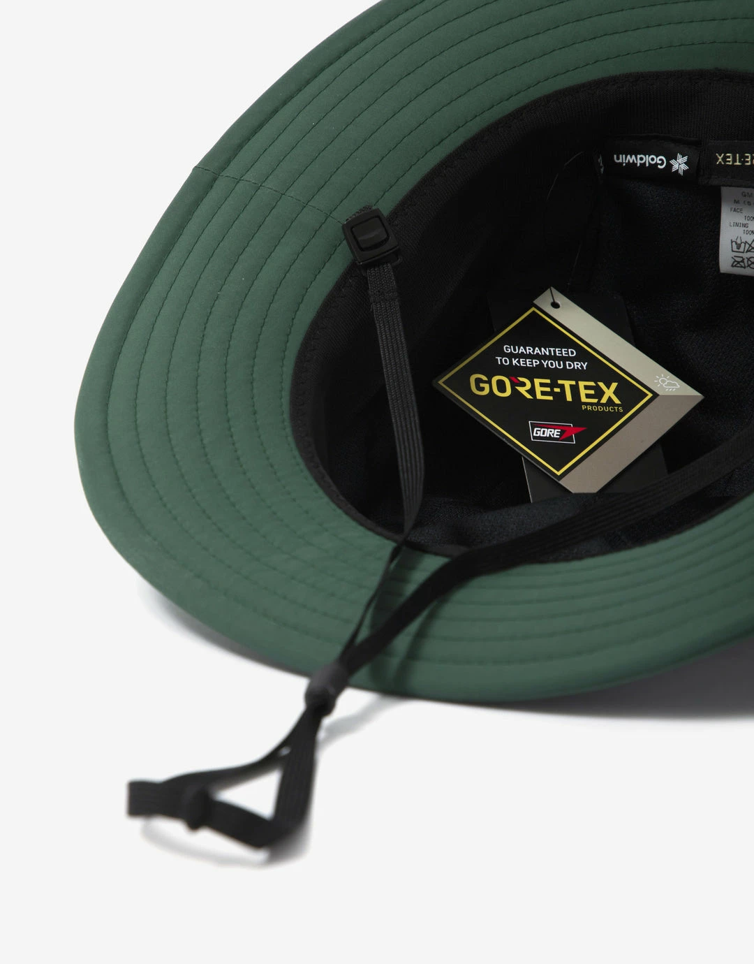 Welcoming Goldwin to the roster of outdoor brands to the Chimp Store. A diverse range of adventure wear, created with sustainability in mind. Made from 100% Gore-Tex material, this hat from Goldwin is designed to keep the rain off you when on your travels and adventures. It has a detachable chin strap, mesh lining for comfort, embroidered logo to the front and a built in adjustable wire in the brim to change the silhouette of the item.