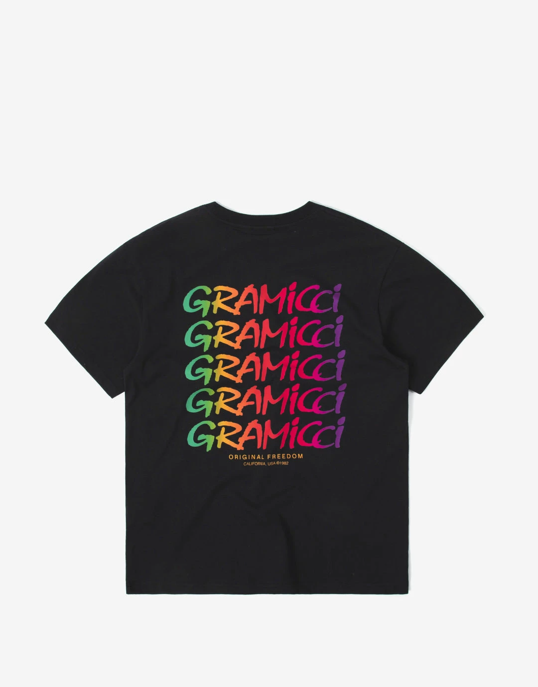 Gramicci’s new Stacked tee is a classic, 100% cotton jersey with a regular fit. It features bold, multicoloured graphics to the front and back. We recommend sizing up from your usual size as Gramicci is listed in Asia sizing. For example, an Asia Medium, is a US/EU Small.