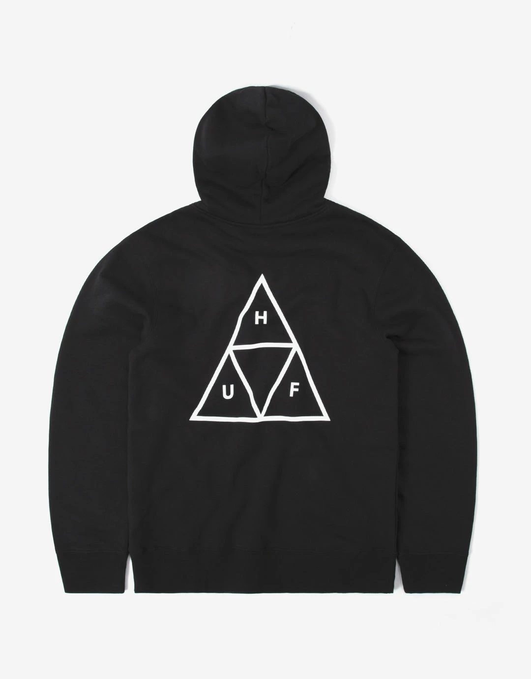 The essentials range from HUF focuses on core graphics from their extensive back catalogue. The HUF Triple Triangle Pullover Hoody is a poly cotton blend heavy fleece with screen printed graphic touches.