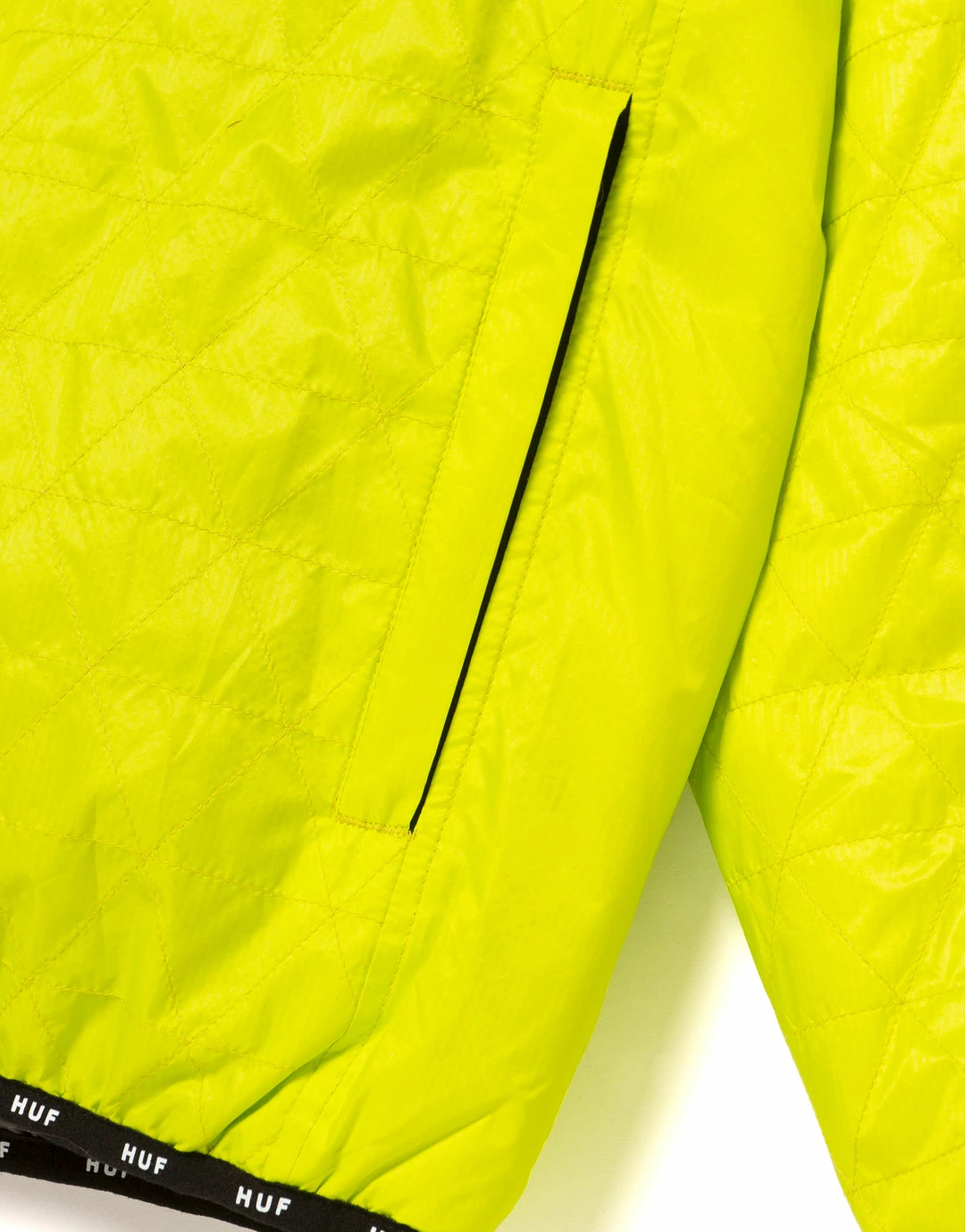 The HUF Polygon Quilted Jacket comes in a 100% poly-micro ripstop material and is the perfect lightweight jacket option. If you’re on the move, the Polygon Quilted Jacket is fully packable, and includes the HUF signature triangle quilting, with poly-fill insulation for warmth. HUF branding is visible at the left chest in the form of their rubberized Triple Triangle logo.