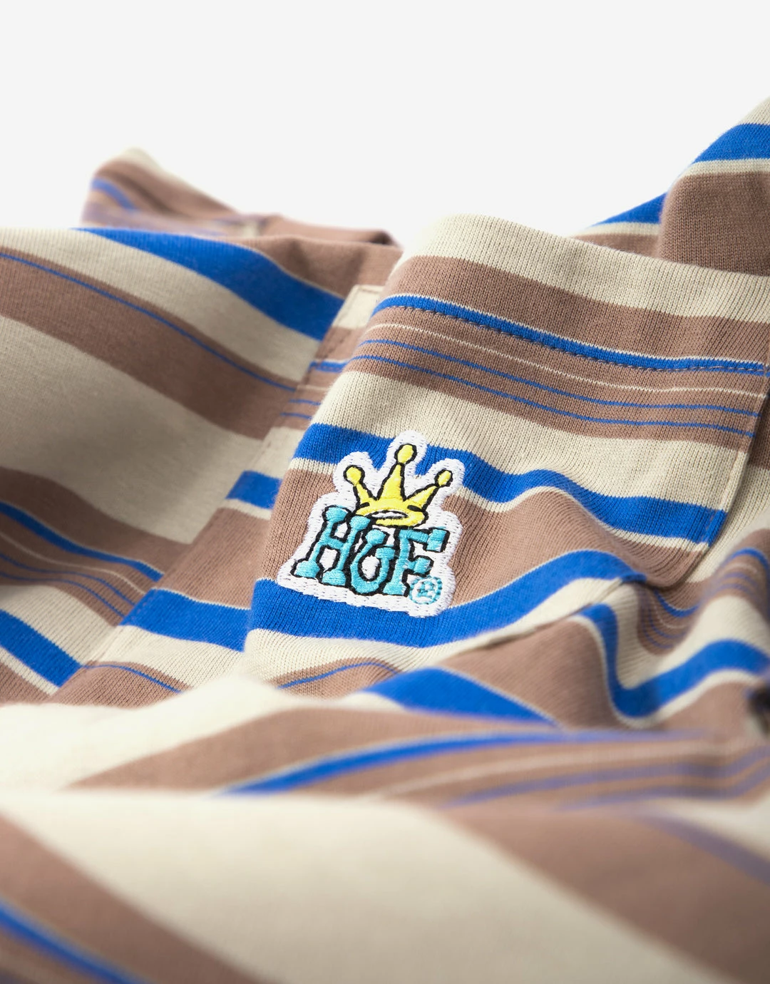 Made from 100% cotton, the yarn dyed stripe Stratford Knit from HUF is bold and a stand out item from this Summers collection. It features a small chest pocket with embroidered logo and a rib collar to finish.