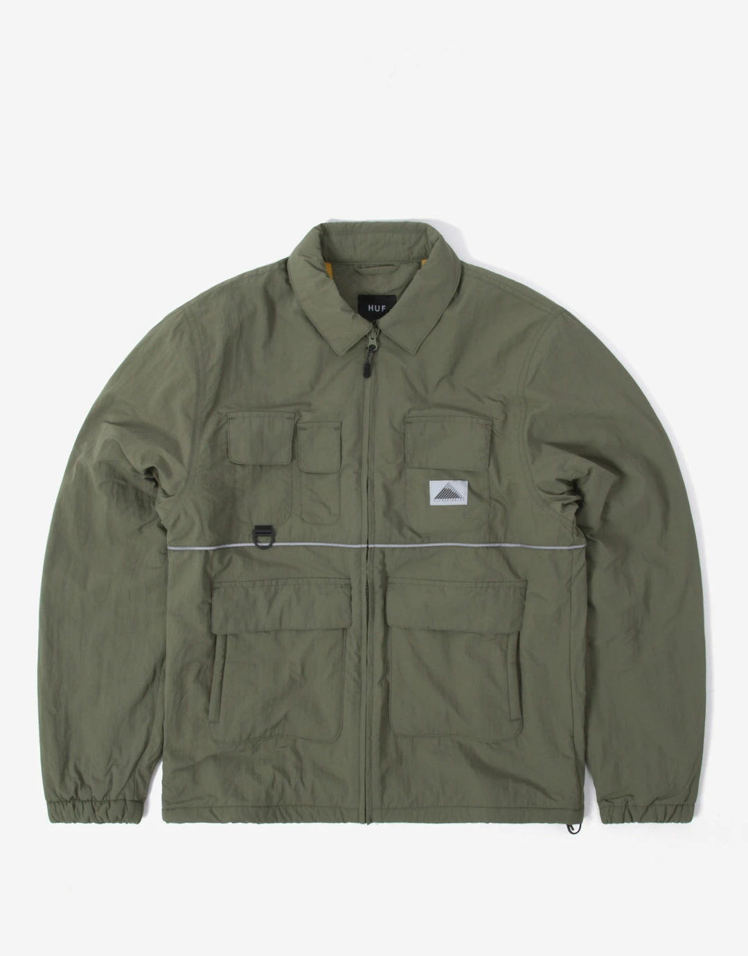 Taking on a familiar outdoor style, the Summit Jacket from HUF comes in a midweight Nylon, with DWR coating. Lined with Polar fleece, this jacket is a certified winter warmer. The front of the jacket includes two hand pockets, and 3 chest pockets for extra storage. Finished with the HUF Summit reflective patch at the chest.