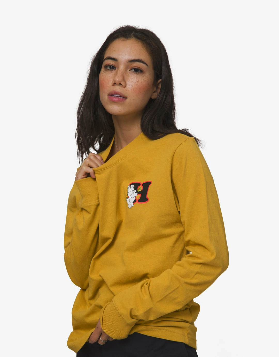 HUF Women’s Giving Long Sleeve Relaxed T Shirt –Â Gold