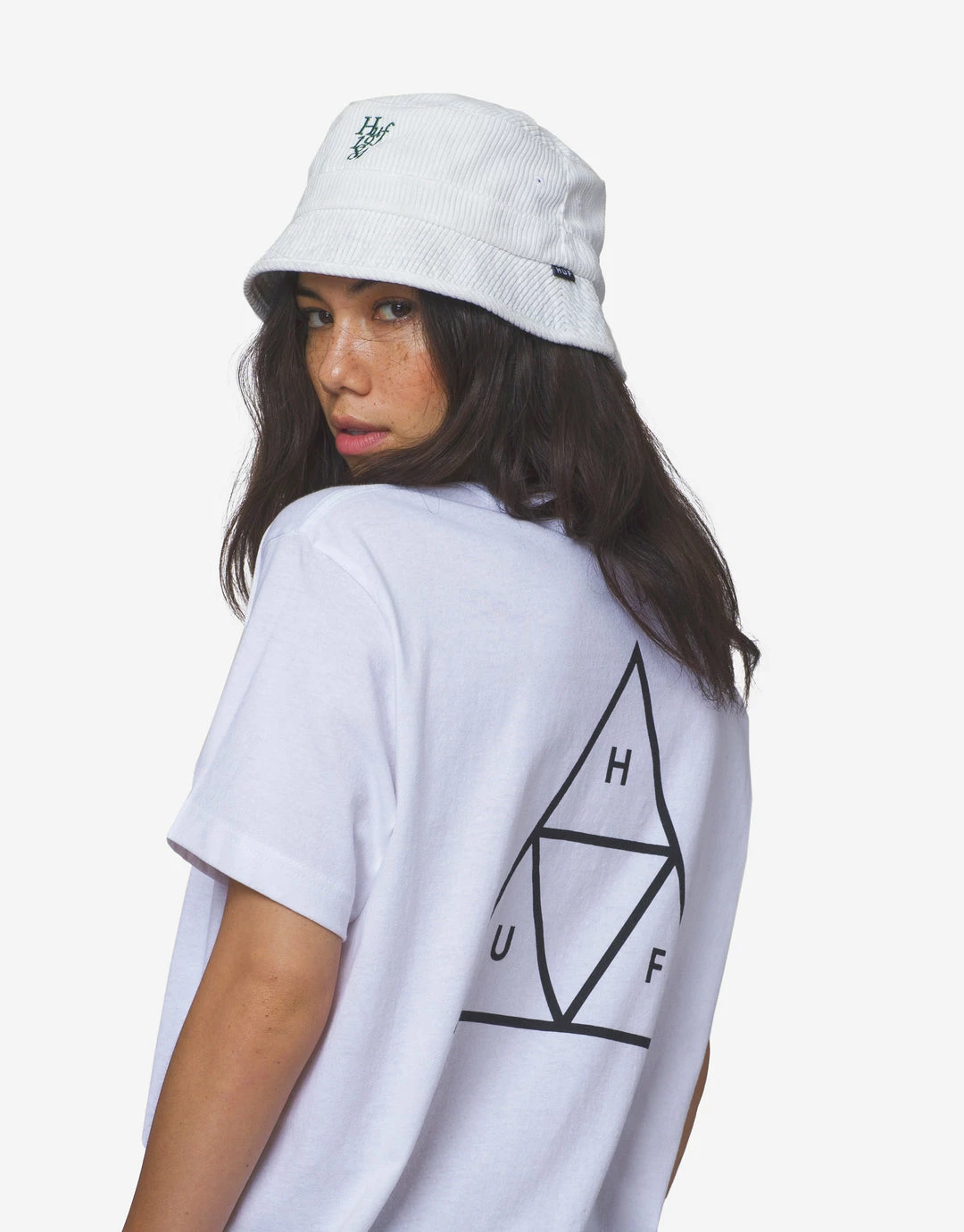 HUF woven label at interior neck –