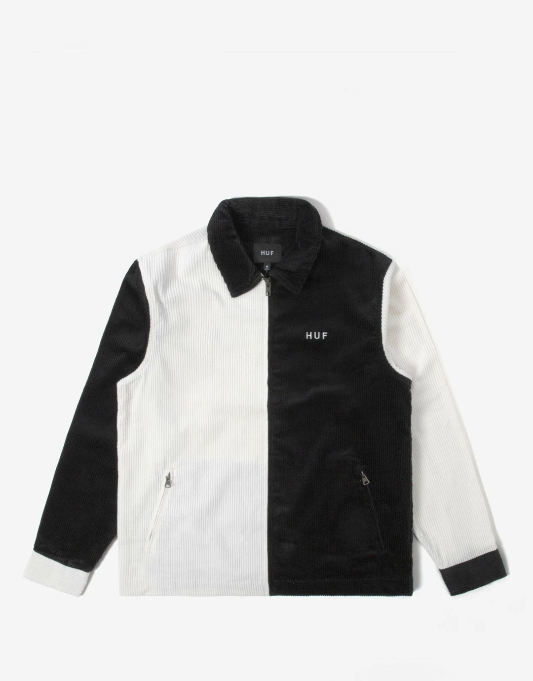 Inspired by 90s skate and streetwear, the Vandenberg Corduroy Jacket is made of chunky wide-wale corduroy in a colour-blocked construction for a throwback vibe. Cut with a convenient full-zip front, the jacket is finished with two welt pockets and an embroidered HUF logo at left chest.