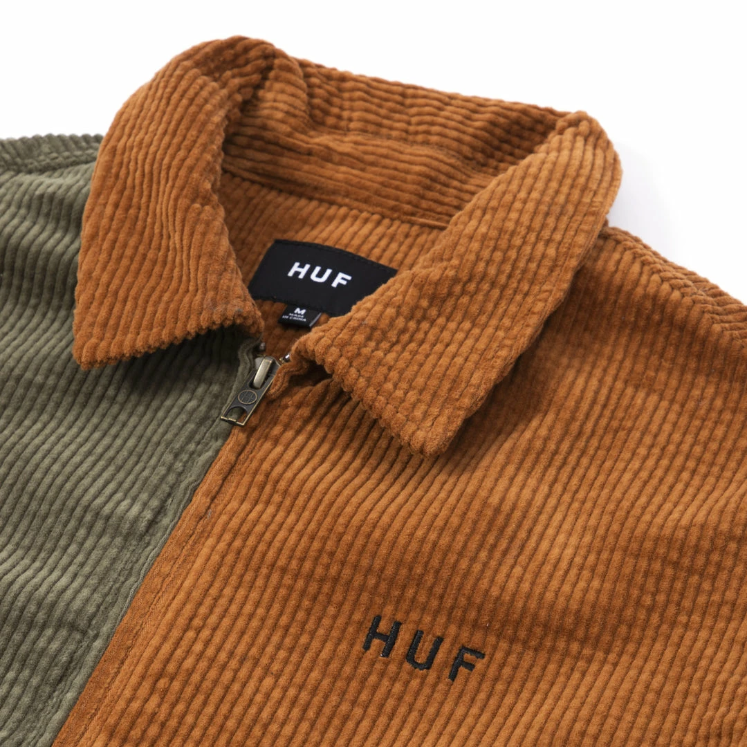 Inspired by 90s skate and streetwear, the Vandenberg Corduroy Jacket is made of chunky wide-wale corduroy in a colour-blocked construction for a throwback vibe. Cut with a convenient full-zip front, the jacket is finished with two welt pockets and an embroidered HUF logo at left chest.