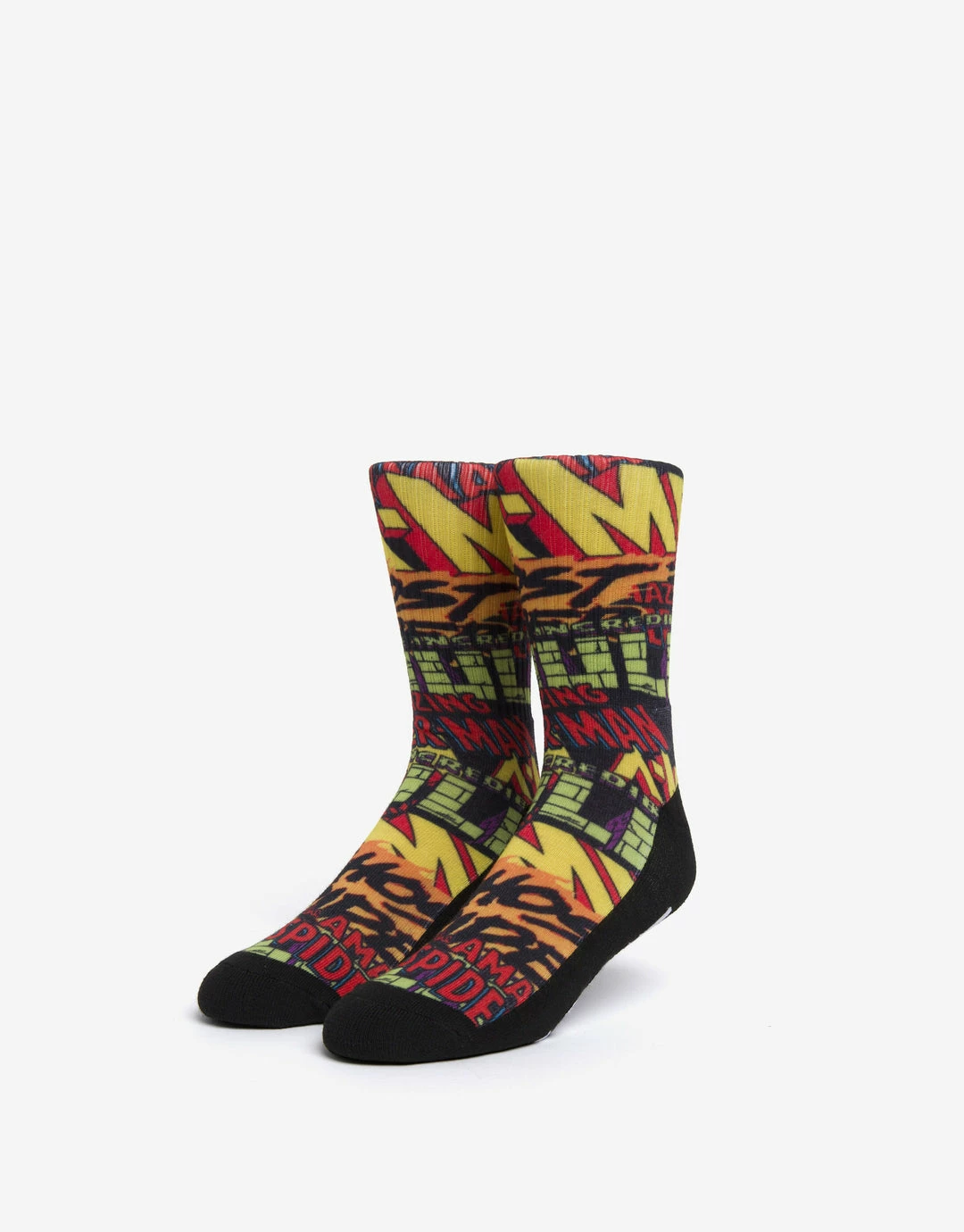 HUF’s newest collaboration, sees them team up with Marvel, to pull some of the most iconic images from the 90s era for a nostalgic collection. Feauring a mash up of Marvel Logos n a jacquard knit with HUF x Marvel branding to the sole. They also come in a custom blister packaging.