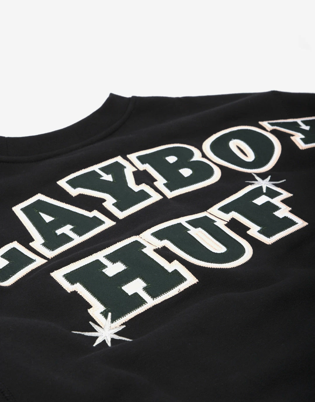 HUF link up once again with Playboy for a continuation of their collaborative relationship. The HUF x Playboy Rabbit Head Crewneck Sweatshirt comes in a heavy 380gsm fleece, with direct embroidery on the chest, and a twill embroidery logo patch at the back.Â