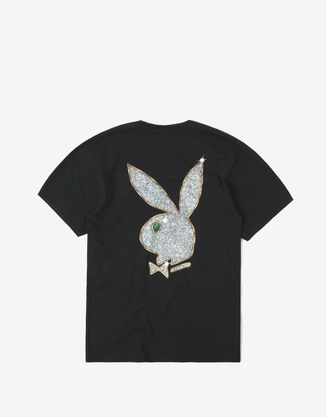 HUF link up once again with Playboy for a continuation of their collaborative relationship. The HUF x Playboy VVS Logo T Shirt features an all over belt print, with each tee being completely unique.Â
