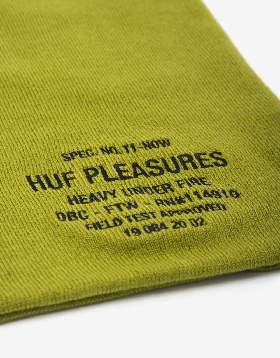 Skate scene favourites, HUF, link up with LA’s very own Pleasures on a capsule collection that marries perfectly the inimitable styles of the two esteemed brands. The HUF x Pleasures Outro Beanie is a full ski mask style, complete with dual branding and jacquard plantlife imagery.