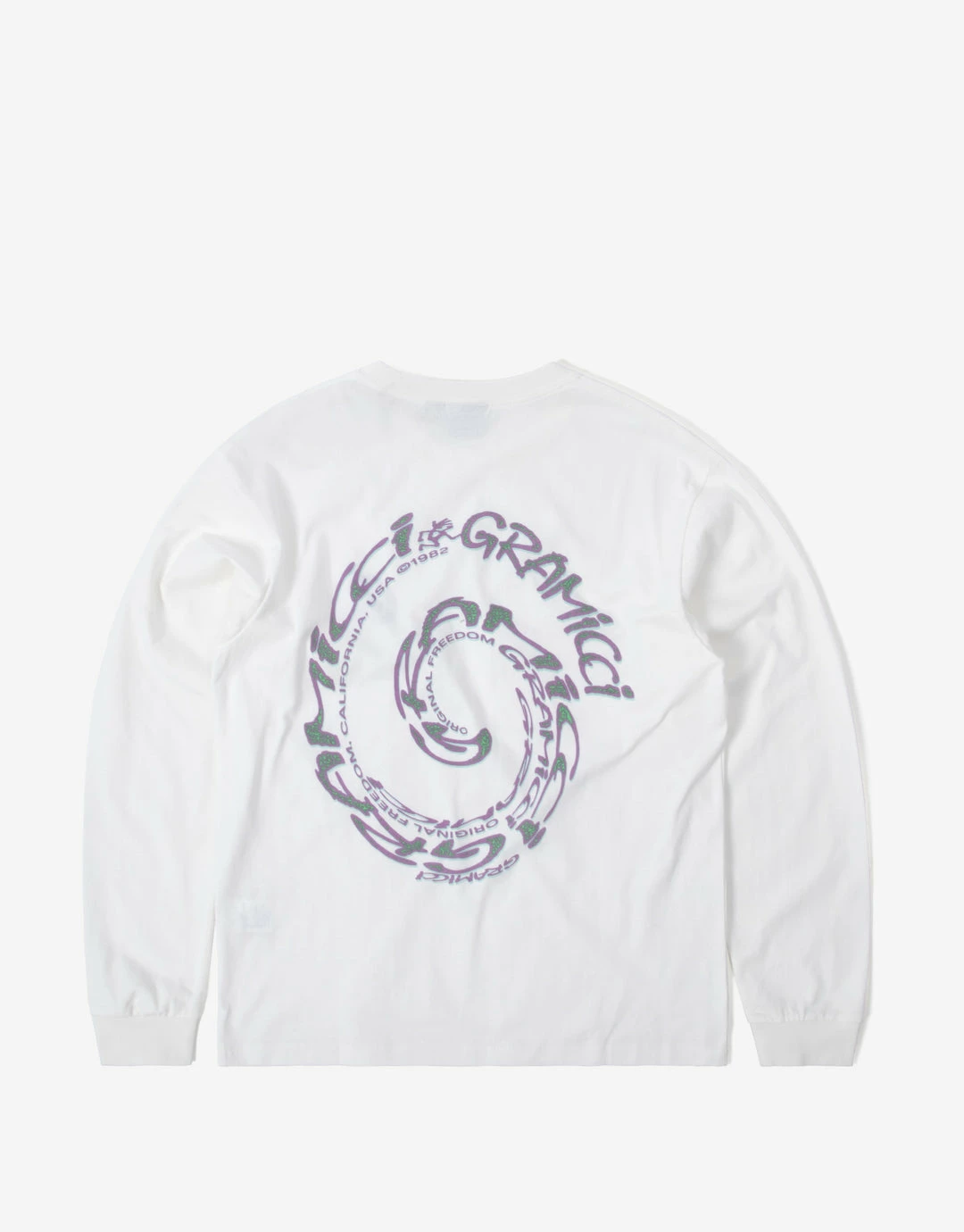 Gramcci’s Swirl Long Sleeve tee is a 100% cotton jersey, complete with multicoloured front and back prints and ribbed sleeve cuffs for a snug fit. All you need for those cooler temp, outside adventures. We recommend sizing up from your usual size as Gramicci is listed in Asia sizing. For example, an Asia Medium, is a US/EU Small.
