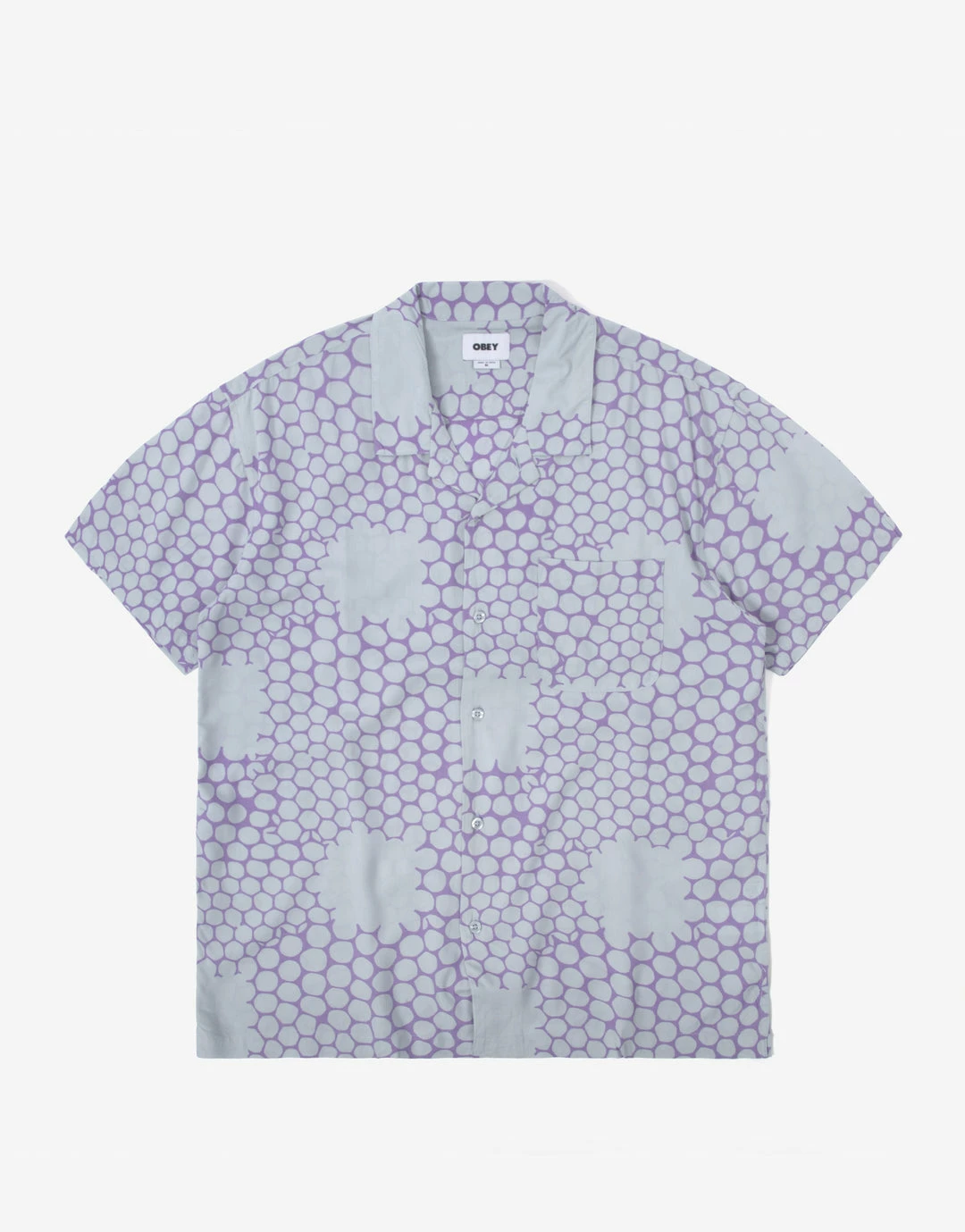 Obey’s Honeycomb Woven Shirt features just what you would expect, an allover honeycomb print! Just in time for the warmer season, this short sleeve piece is made from 100% viscose and is lightweight and breathable. It features a camp collar, full button up closure to the front and single chest pocket.