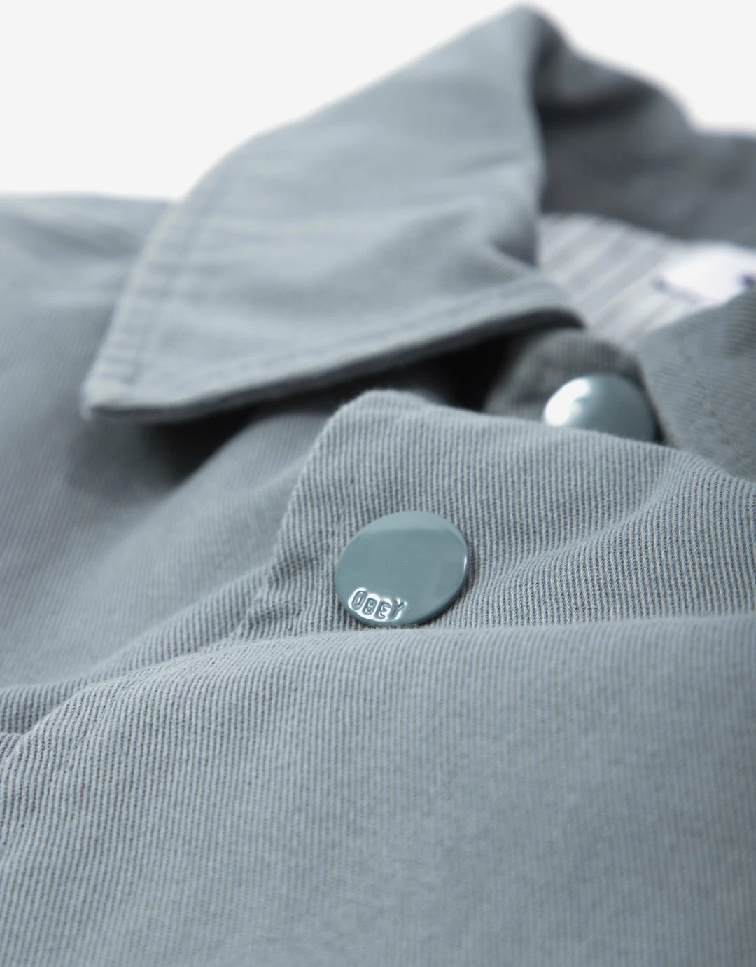 Obey’s Saucer Jacket is a classic coach styles jacket made from 100% cotton twill. It features a snap button closure, twin hand pockets, elasticated cuffs, contrast lining and large back print.