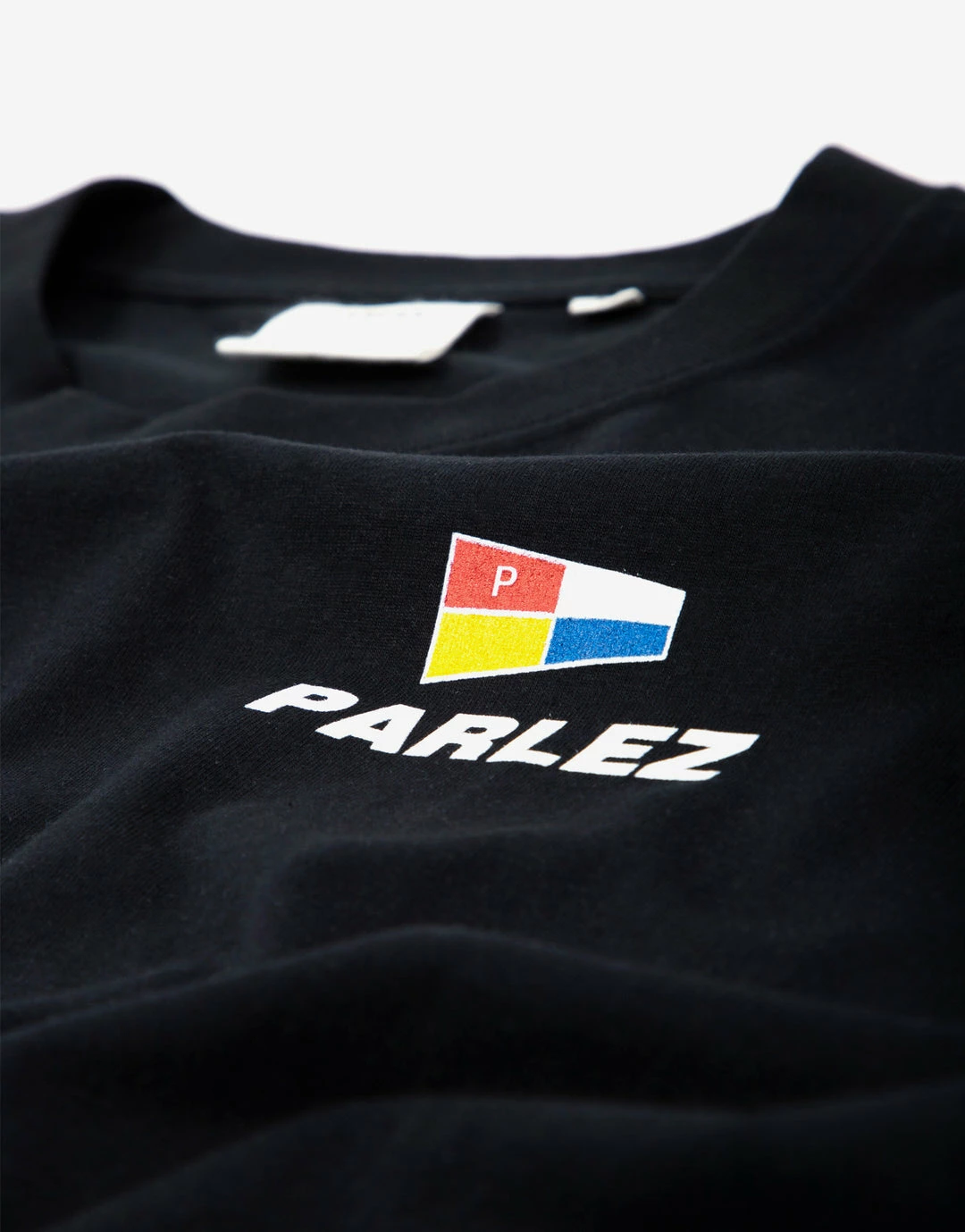 Featuring printed chest and back graphics, the Tradewinds tee from Parlez is a must have. Made from 100% organic cotton with a ribbed neckline.