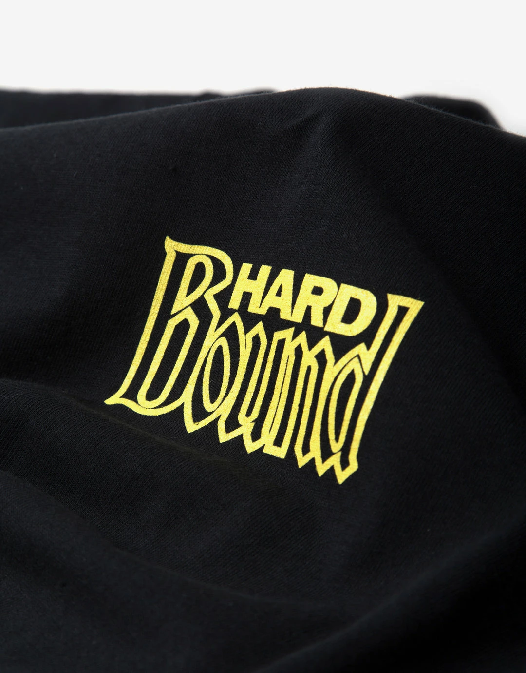 We are introducing Playdude to The Chimp Store this year! Pushing, bright and bold colourful graphics throughout, Playdude have not come to play. Stemming from the Playdude Press first release, Top Shelf Type, a retro, adult magazine design research book. The Hard Bound tee has a bright yellow design that contrasts with the black background, with gothic style typefaces and sauce filled graphics. Made from 100% cotton with a regular fit.