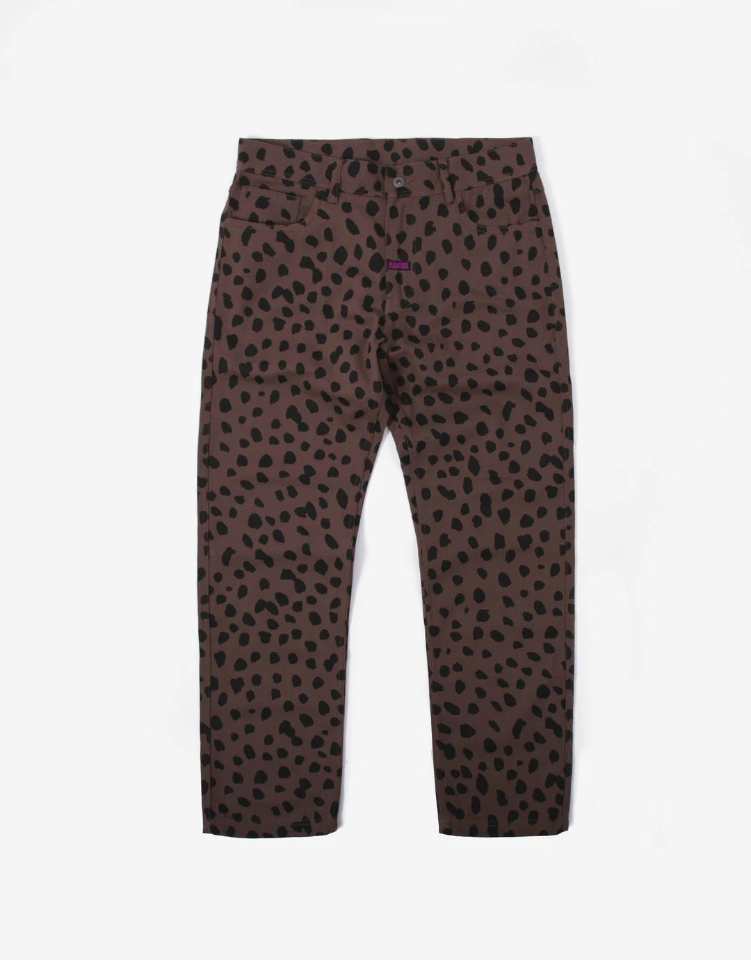 More printed goodness from Pleasures. The Dalmatian Jeans feature an all over scattered Dalmatian dot print. They are made a 12oz bull denim, feature a 5 pocket classic style with a straight leg and are finished with woven label branding detail to the front fly.