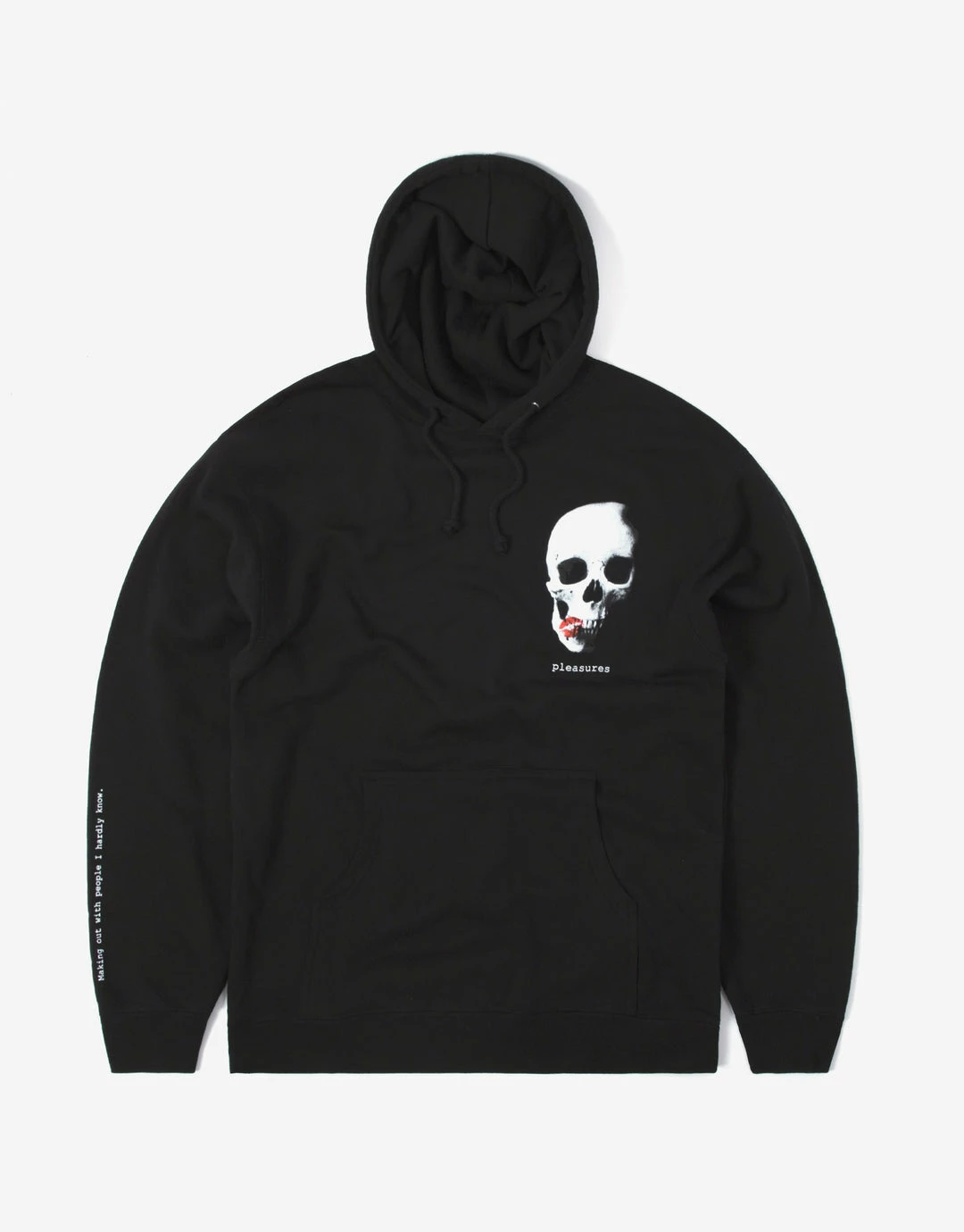 With oversized printed graphics, the Pleasures Make Out Hoody comes in a heavyweight cotton/poly blend. Featuring a large scale front print, the hoody is finished with a back print message, ribbed cuffs and hem, drawstrings in the hood and a kangaroo pocket.