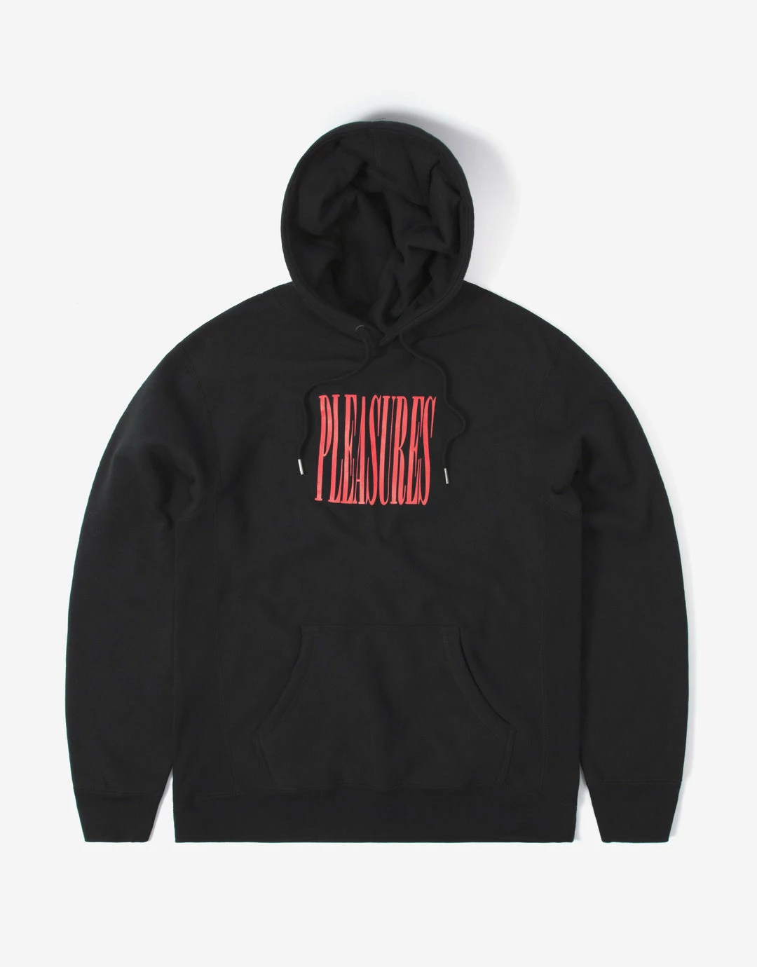 The Pleasures Stretch Premium Hoody comes in a heavyweight cotton blend, complete with chest branding, featuring their OG text logo in a stretched out format. Finished with ribbed cuffs and hem, kangaroo pocket and drawstrings in the hood.