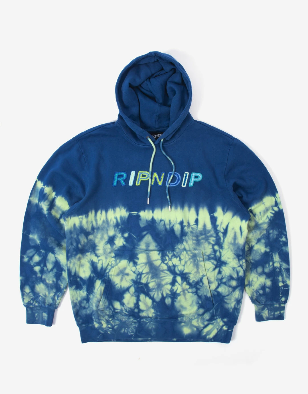 Rip N Dip get trippy with their Prisma Hoody in Blue Lightning Wash. In a custom tie dye finish, this heavyweight hoody features Rip N Dip branded embroidery at the chest, ribbed cuffs and hem and a kangaroo pocket for extra cosiness.