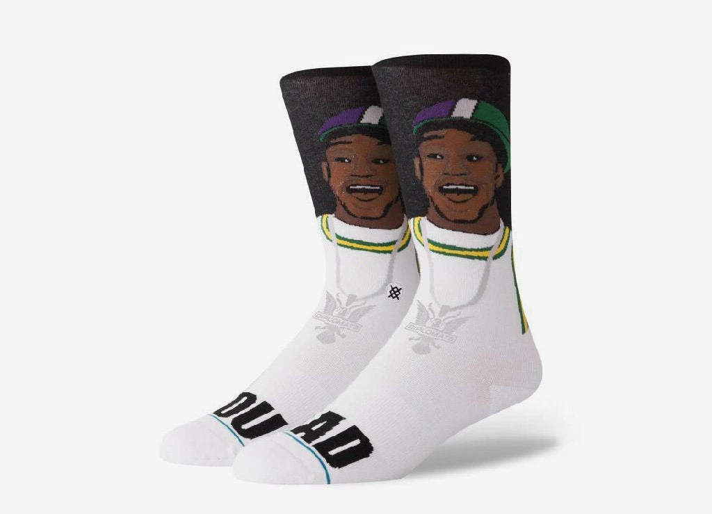 Stance has teamed up with Harlem, NY rapper Cameron Giles predominantly known by his stage name Cam’Ron. Along with his rap new The Diplomats they controlled the charts in the mid-2000s. Achieving mainstream success with monster singles ‘Oh Boy’ which was followed by his Chimp Staff favourite album ‘Purple Haze’. The Stance x Cam’Ron socks are available now in a very on brand pink colour option.