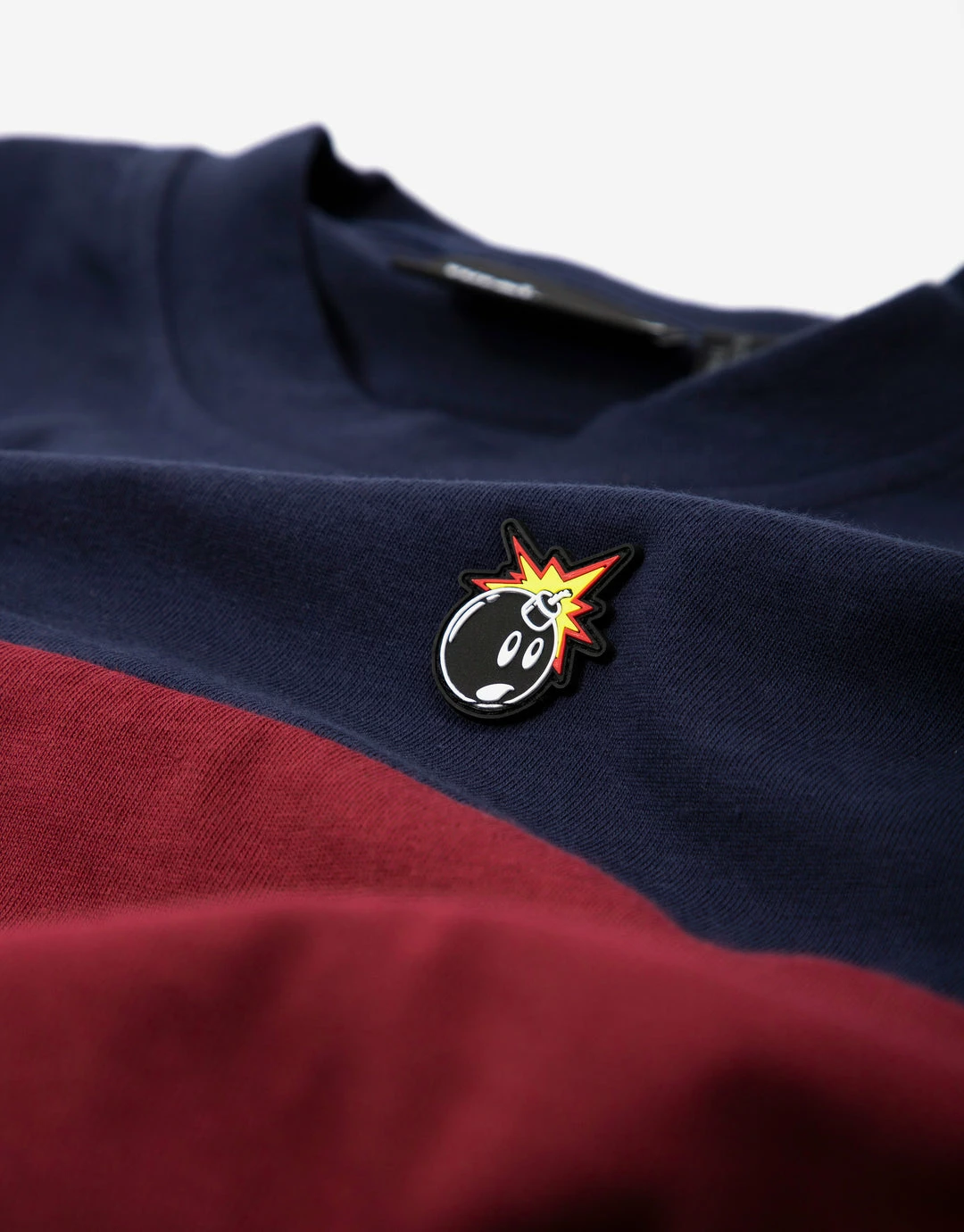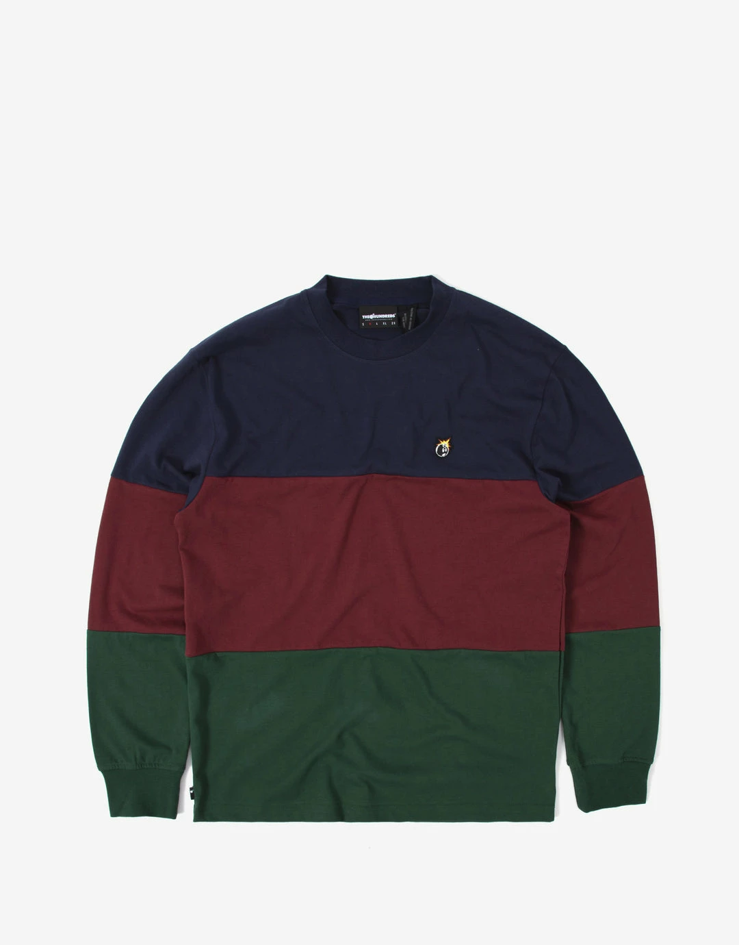 The Grove Long Sleeve T Shirt from The Hundreds newest collection is a bold, colourblocked piece. It has a high density Wildfire logo print neck detail to the rear and an Adam bomb rubberized TPR patch to the left chest.Â