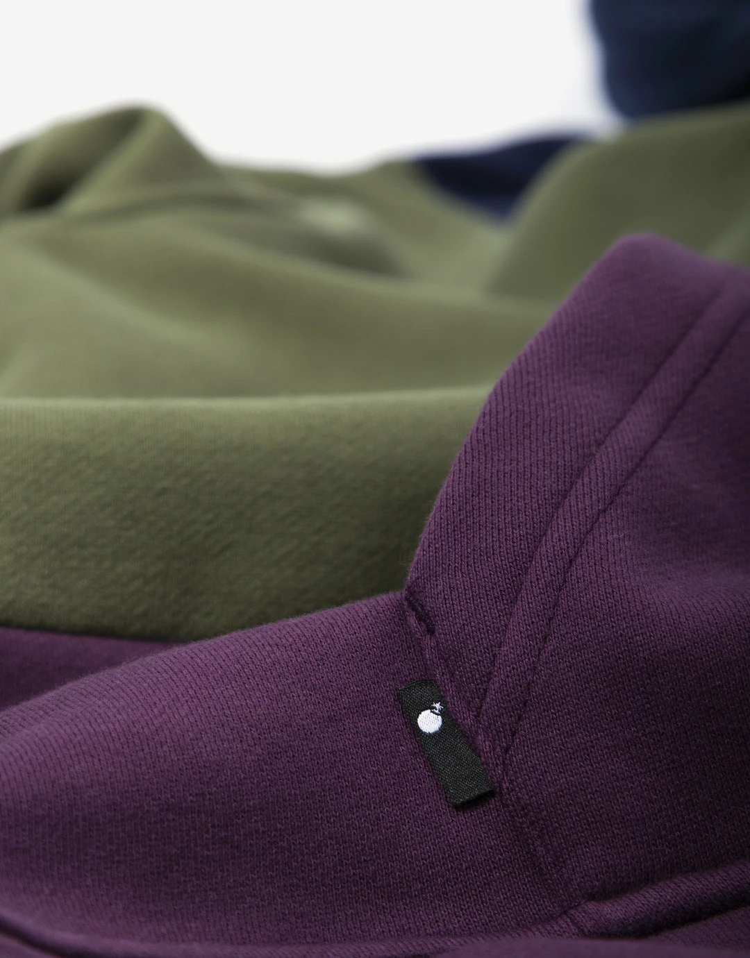 The Hundreds Harbor Hoody is a pullover style piece and features heavy cut and sew elements throughout. Constructed from a heavyweight 380gsm brush back fleece, it features a chenille Adam Bomb patch to the chest, kangaroo pouch pocket, drawstring hood and ribbed trims.
