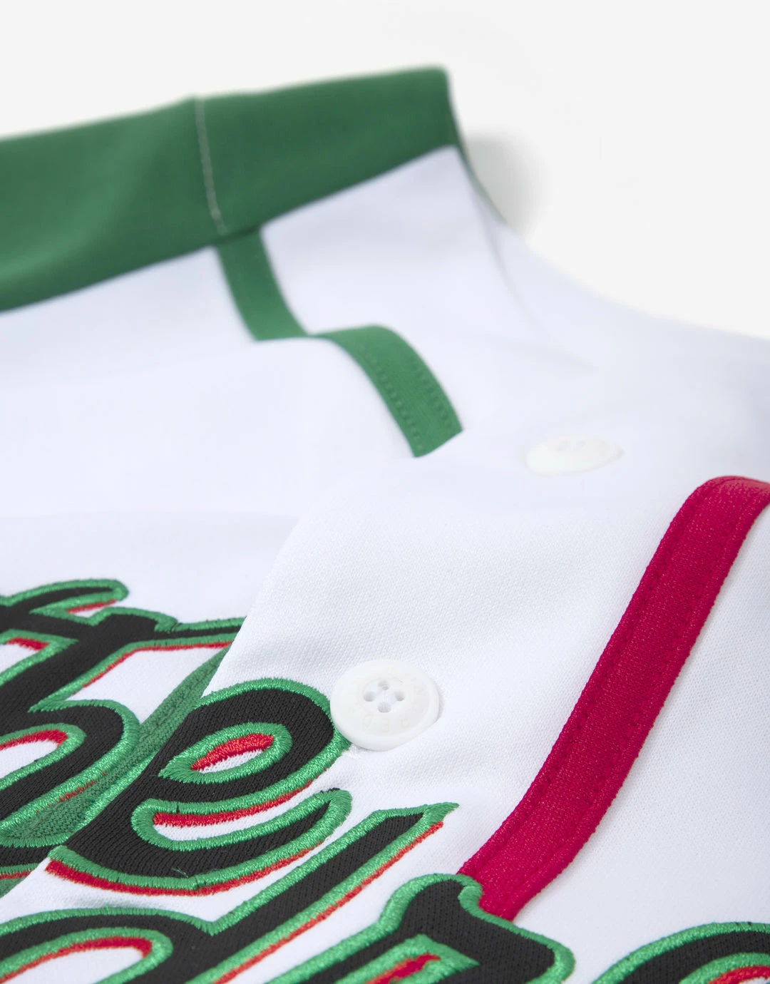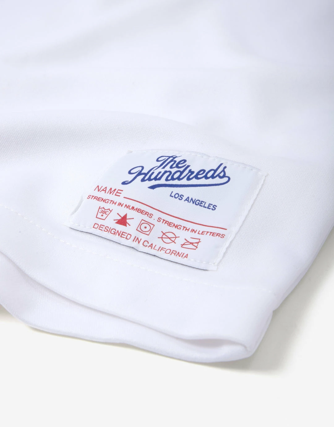 The Hundreds Mania Jersey keeps a running theme going the brand have explored for some time now. Championing a baseball jersey silhouette it features The Hundreds Slant Logo at the chest, in an embroidered applique format. Finished with button up closure and dual arm patches, the Mania Jersey comes in a 100% polyester sports jersey.